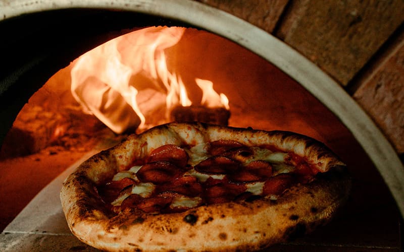 Всю пиццу в нашем рестробаре мы выпекаем по уникальной технологии в дровяной печи, на живом огне. Это настоящий эксклюзив